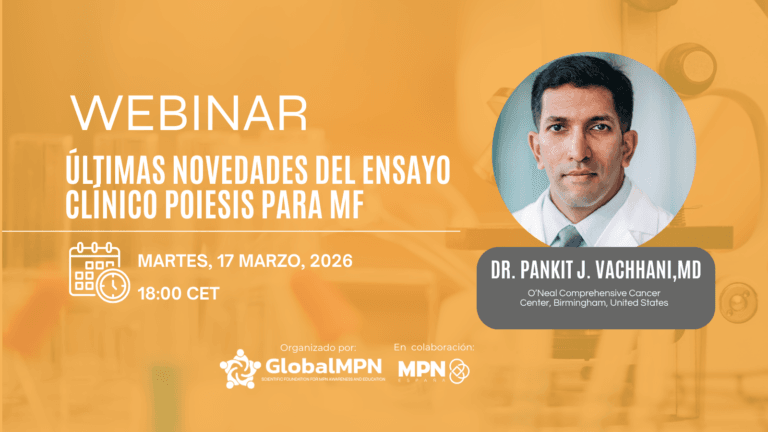 La Global MPN Scientific Foundation, organiza un nuevo evento informativo para presentar el estado actual del ensayo clínico POIESIS, uno de los estudios más relevantes que investiga nuevas estrategias terapéuticas para pacientes con mielofibrosis, un tipo de neoplasia mieloproliferativa (MPN).