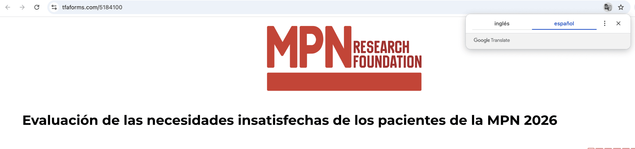 Desde MPN España queremos compartir con nuestra comunidad una iniciativa muy importante impulsada por la MPN Research Foundation: la Encuesta Global 2026 sobre Necesidades No Cubiertas en Neoplasias Mieloproliferativas (MPN).