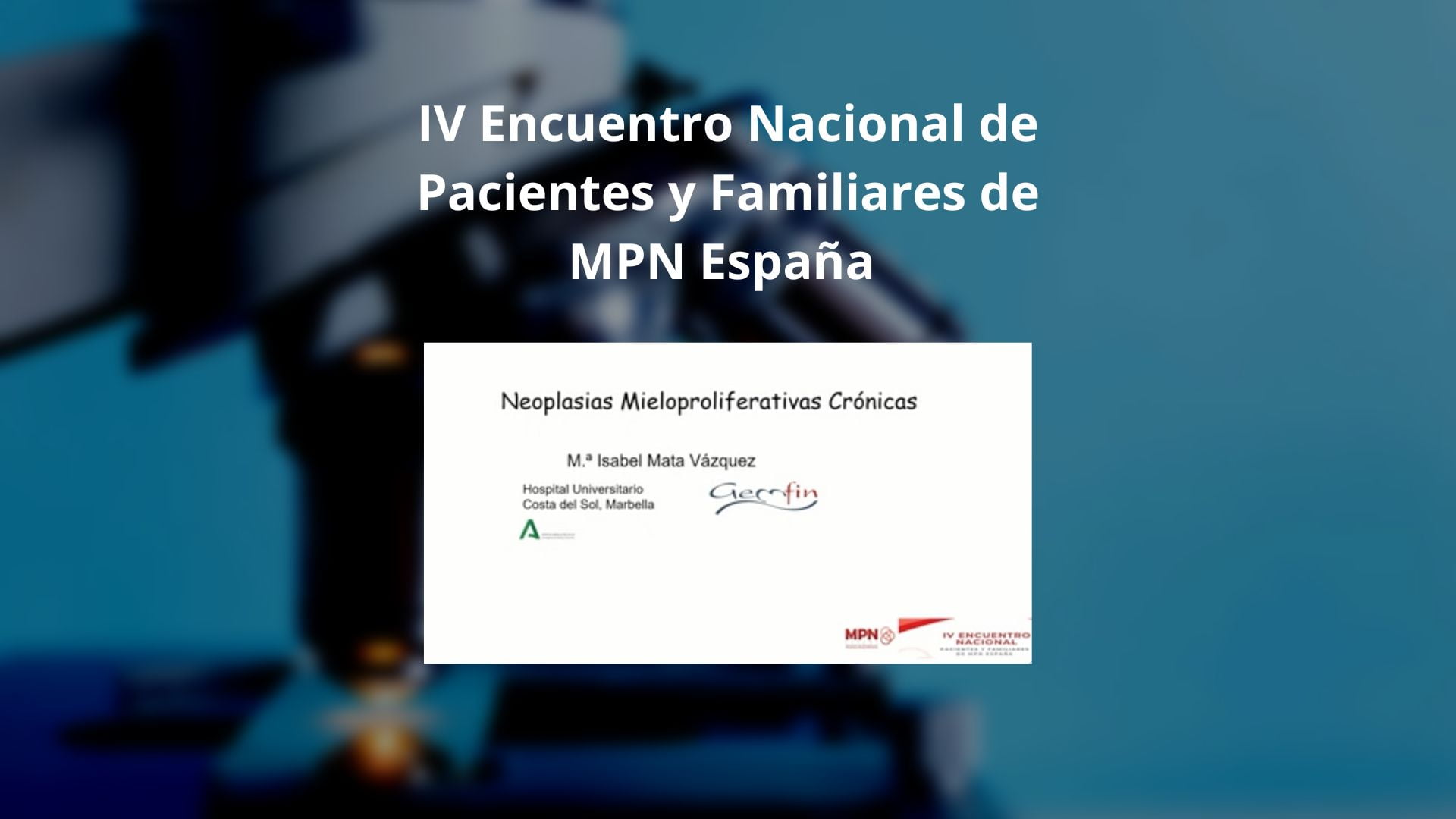 La Dra. María Isabel Mata Vázquez, vocal de GEMFIN y hematóloga del Hospital Universitario Costa del Sol, abrió la primera parte técnica del evento con una presentación detallada sobre el diagnóstico de las NMP Crónicas. Ella destacó que las NMP incluyen condiciones como la Policitemia Vera, la Trombocitemia Esencial y la Mielofibrosis Primaria, cada una con características únicas pero también con síntomas superpuestos.